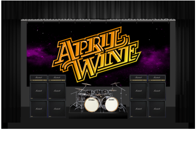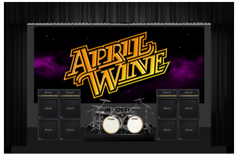 A vivid hand-painted 9' x 20' stage backdrop is currently in production for April Wine. Created on fire-retardant theatrical material, the piece is designed for strong visual presence from any distance and maximum impact under stage lights.